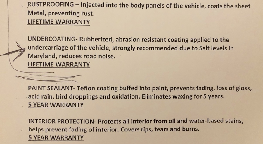 직원이 언더코딩을 추천할때 저는 워런티 연장까지 해서 사실 제 budget을 좀 넘어서 undercoat하는거를 고민하고 있었는데....