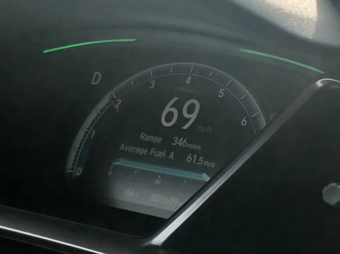 기름이 거의 떨어졌을때 기름을 만땅으로 넣으니 10 gallon 들어가고, 평균적으로 380~ 430miles 사이 달릴수 있다고 떠요.