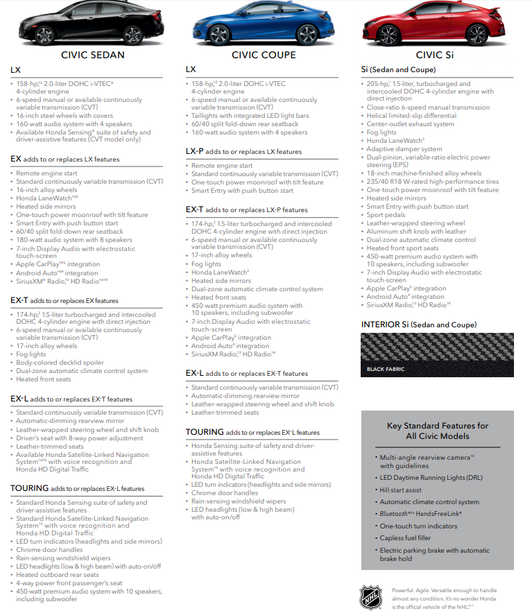 2017년 Civic sedan (4도어) touring에만 포함되어있는건데, Coupe 같은경우에는 Ex-t부터 지원가능하다고 나옵니다~