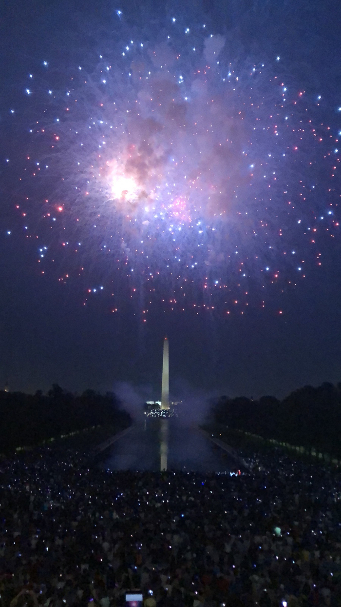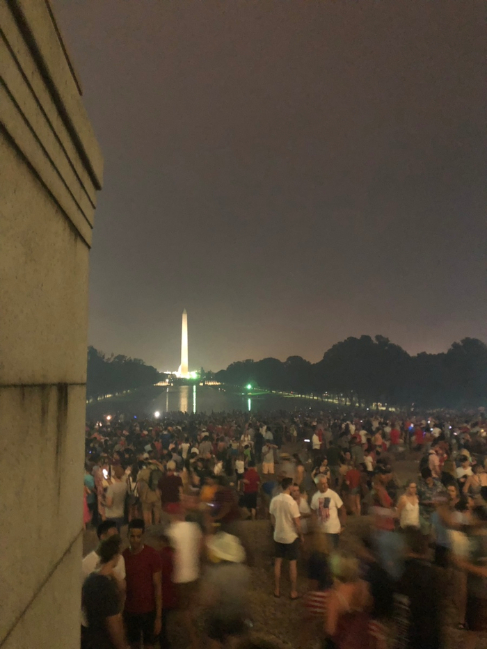 링컨메모리얼이 있는 곳까지 폭죽잔해가 날라다니고, 폭죽 연기가 자욱하고, 사람들이 번잡스럽게 빠져나가기 시작했어요~