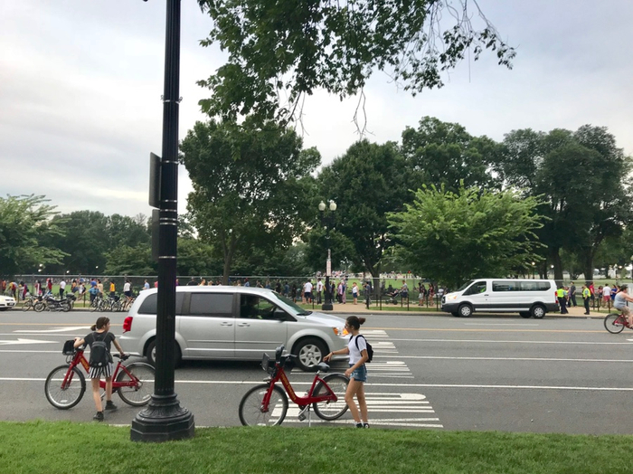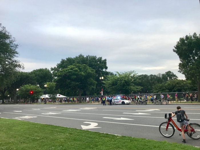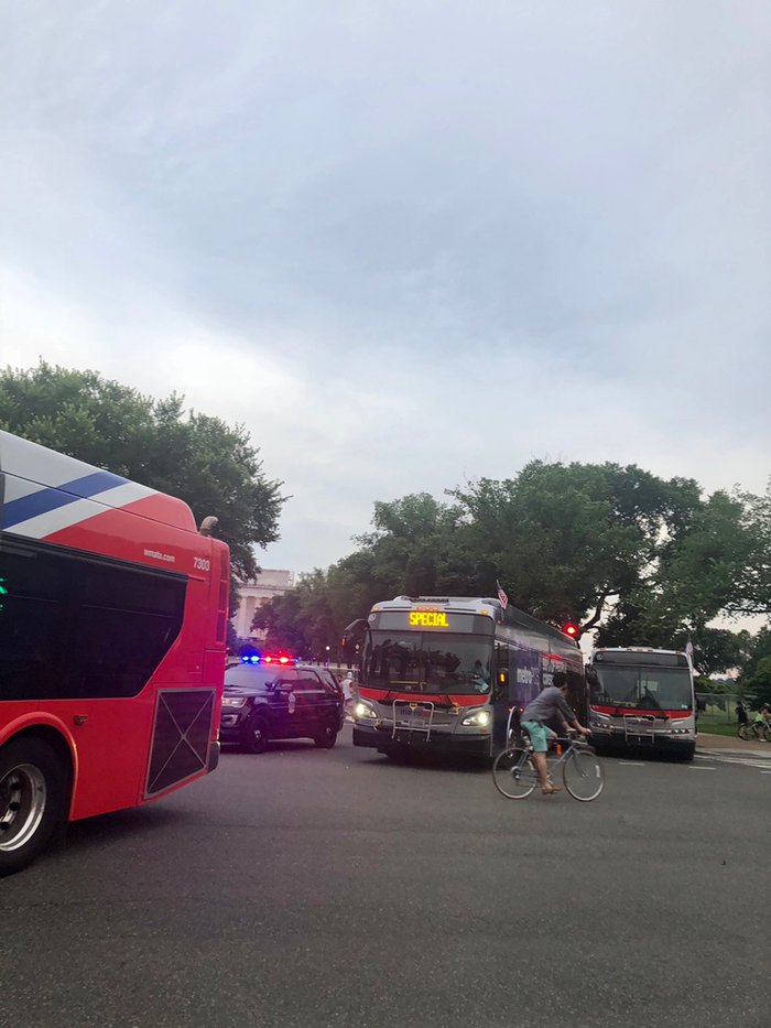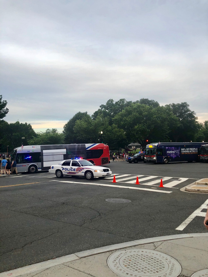 저희가 불꽃 보러가려는 장소는 링컨 메모리얼이였는데, 가는 길에는 몇몇 도로는 이미 버스로, 경찰차로 통제된 상태였답니다.